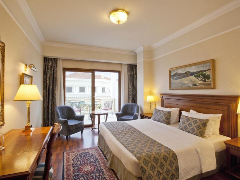 Both luxury suites and luxury rooms exude discreet elegance and exclusivity. The en-suite bathrooms offer a separate shower cabin, as well as bathrobes and slippers. Wall-mounted LCD TVs and soundproofed windows are included.
