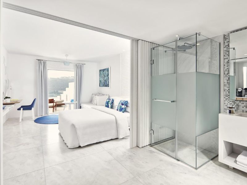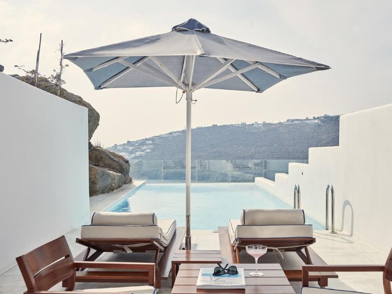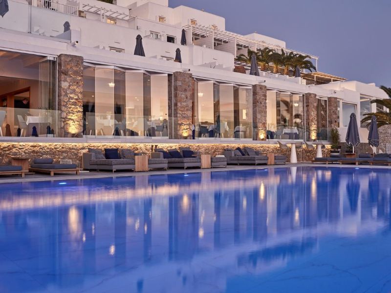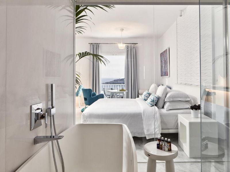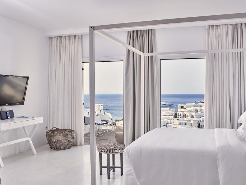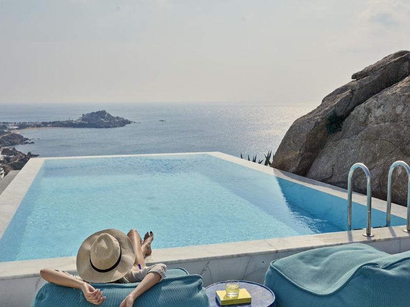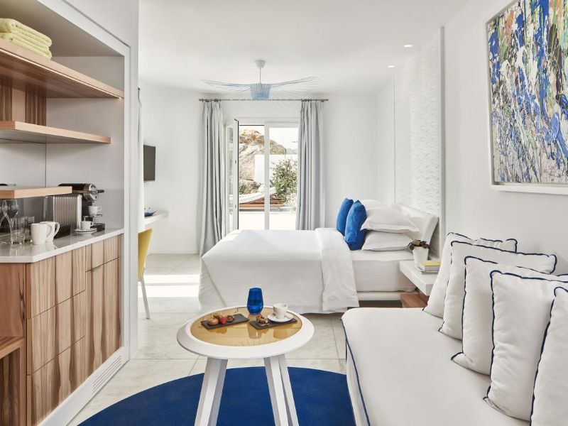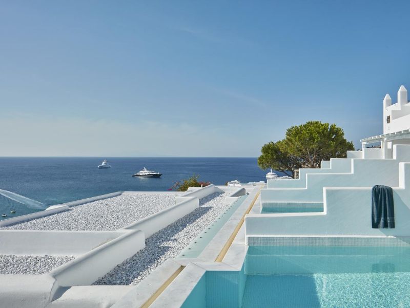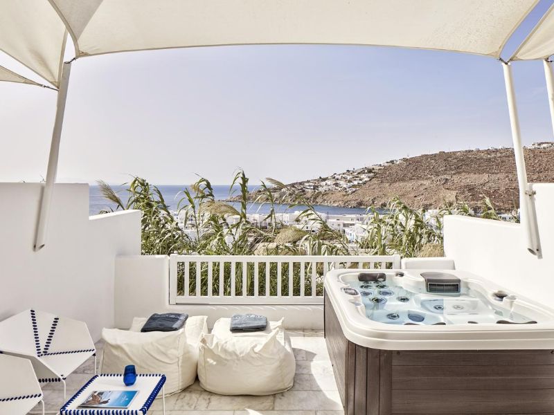 Overlooking the popular beach of Platis Gialos, the Myconian Ambassador Relais & Chateaux provides excellent spa and wellness facilities, and a huge outdoor swimming area.The stylish rooms at the Myconian Ambassador Relais & Chateaux have Aegean-Sea views. Facilities include a satellite LCD TV, CD/DVD player and minibar. Some units also feature an outdoor hot tub, or a private or sharing pool.